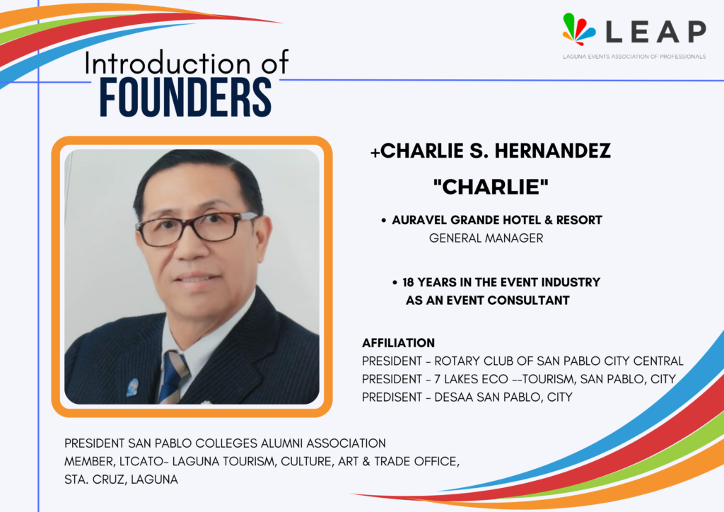 Laguna Events Associations of Professionals would not be as great as it can be without the most hardworking and dedicated individuals. May we present to you the Founding Board of Laguna Events Associations of Professionals.